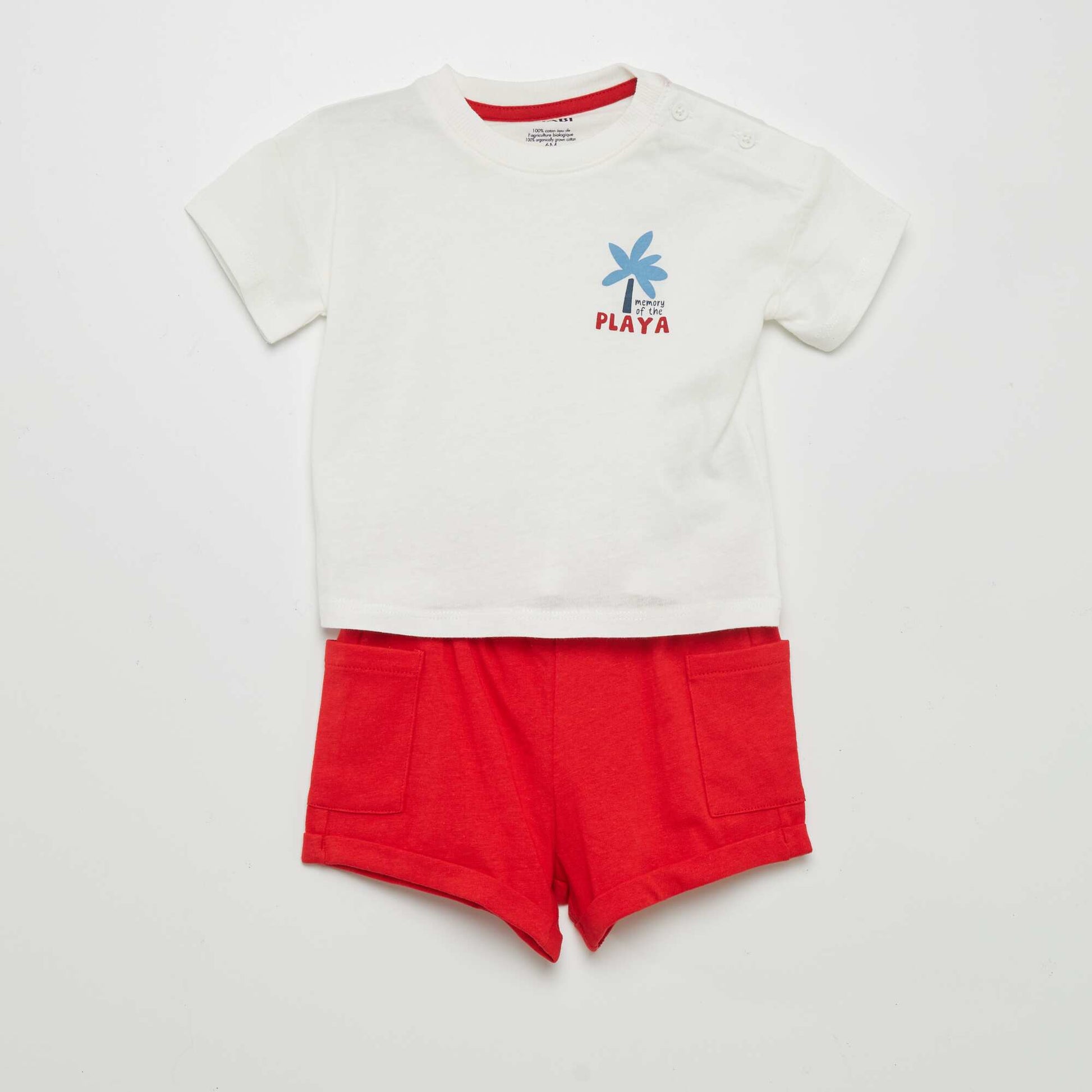 Ensemble tee-shirt + short - 2 pièces Blanc/rouge