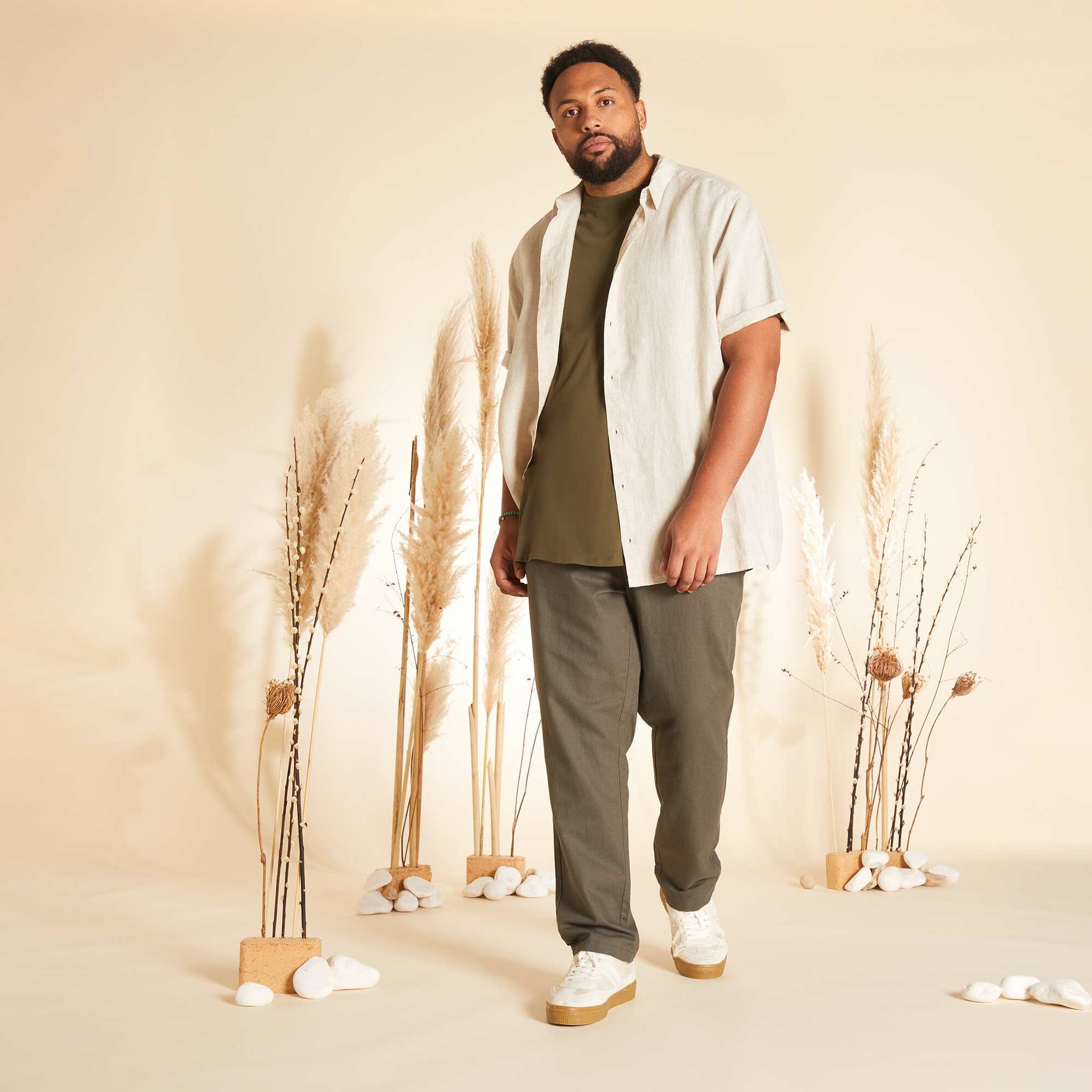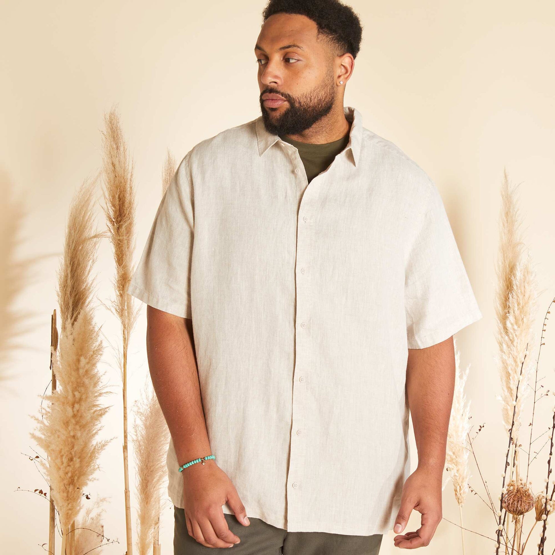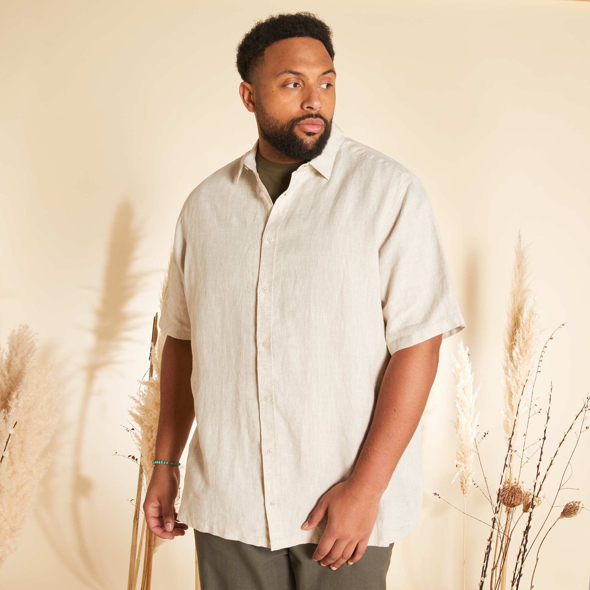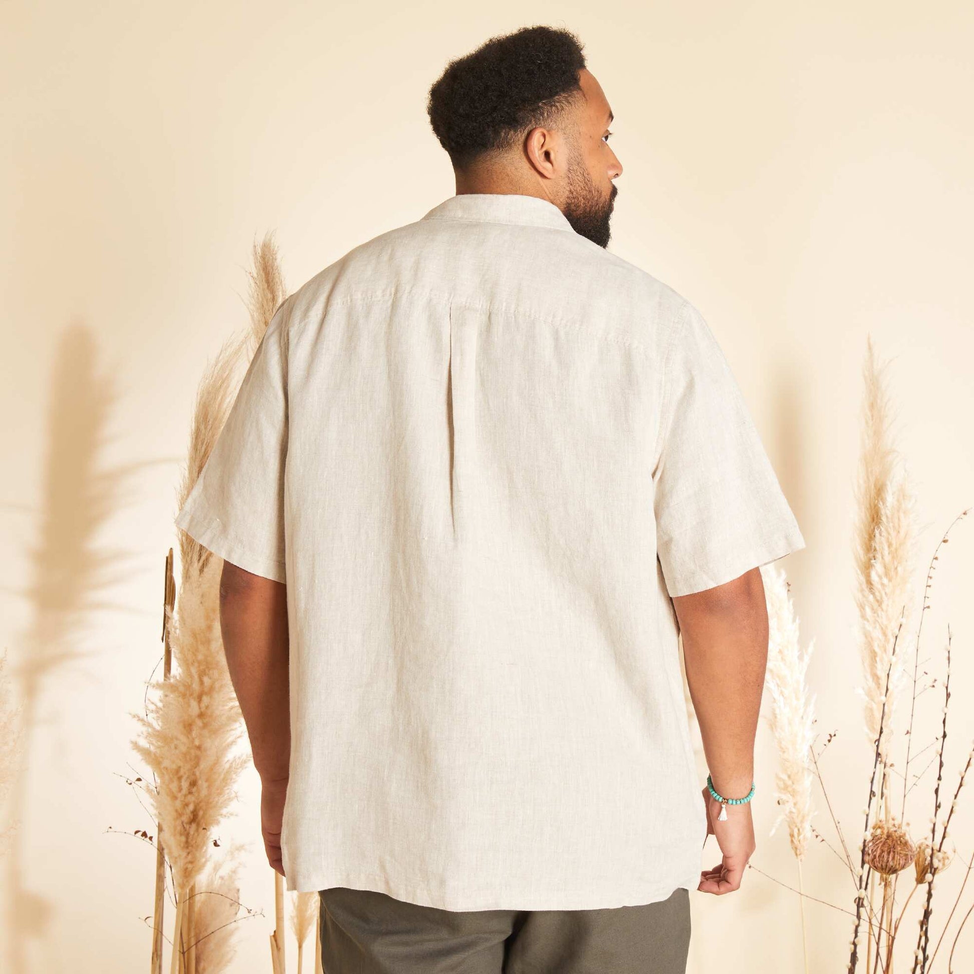 Chemise en lin à manches courtes beige