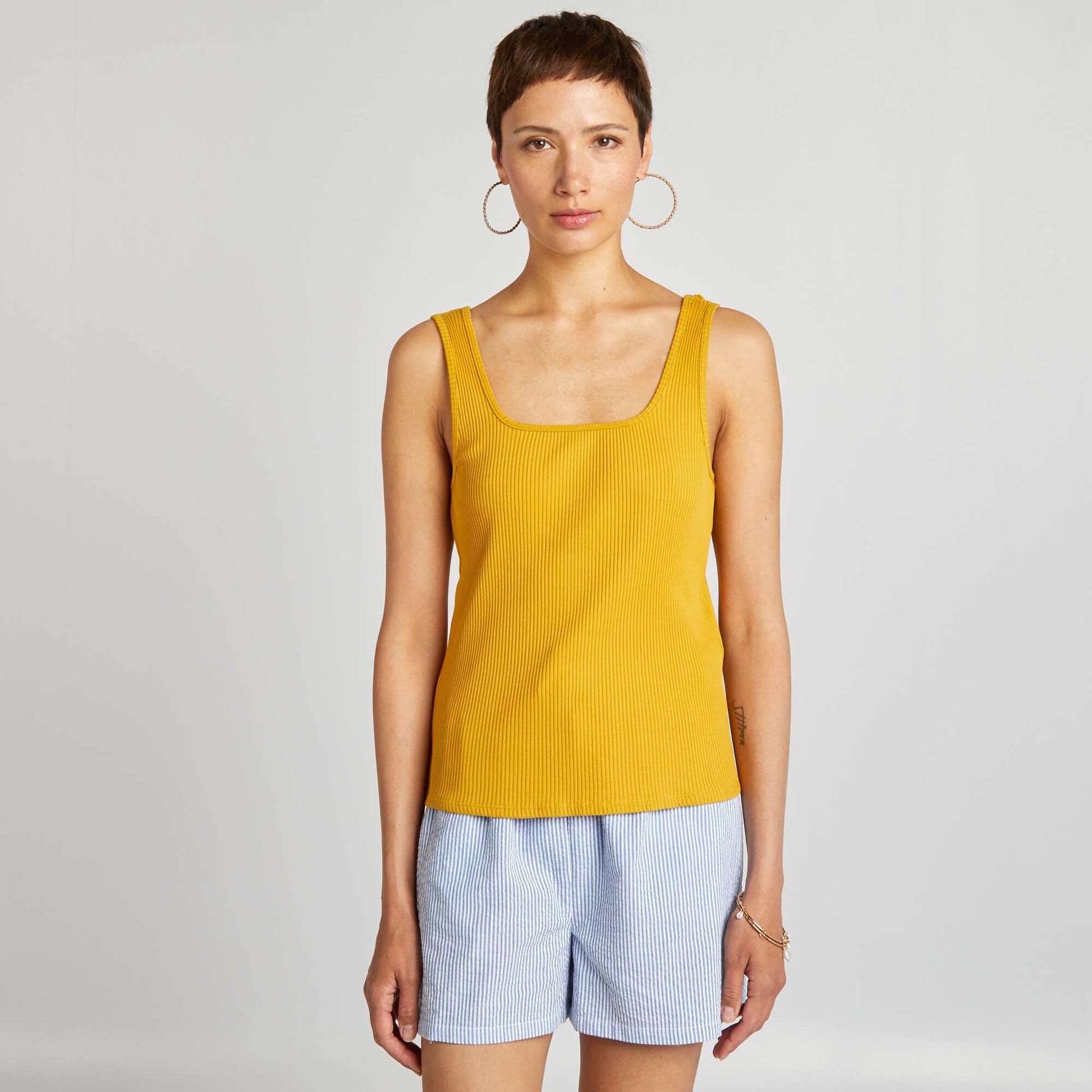 Débardeur côtelé avec col carré Jaune