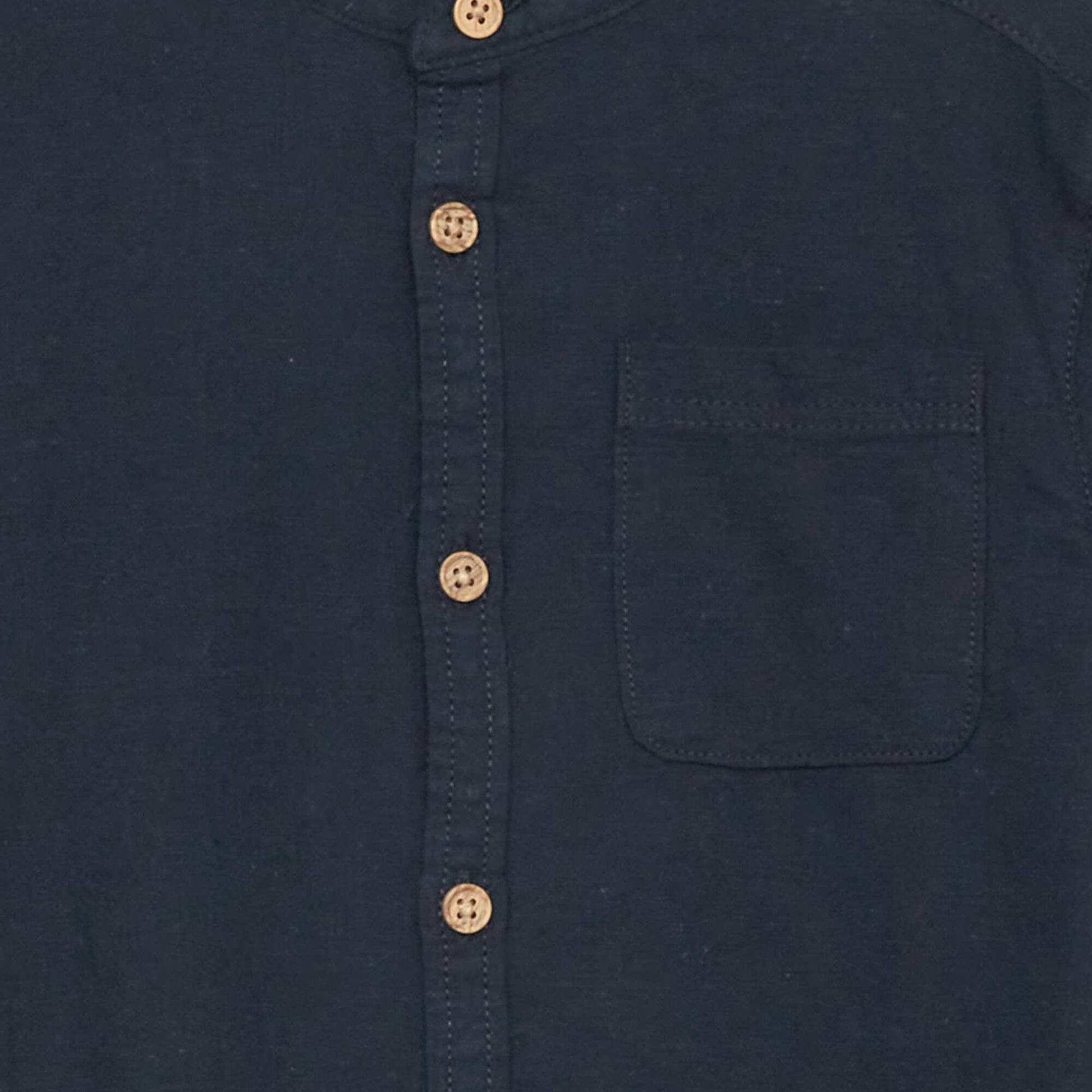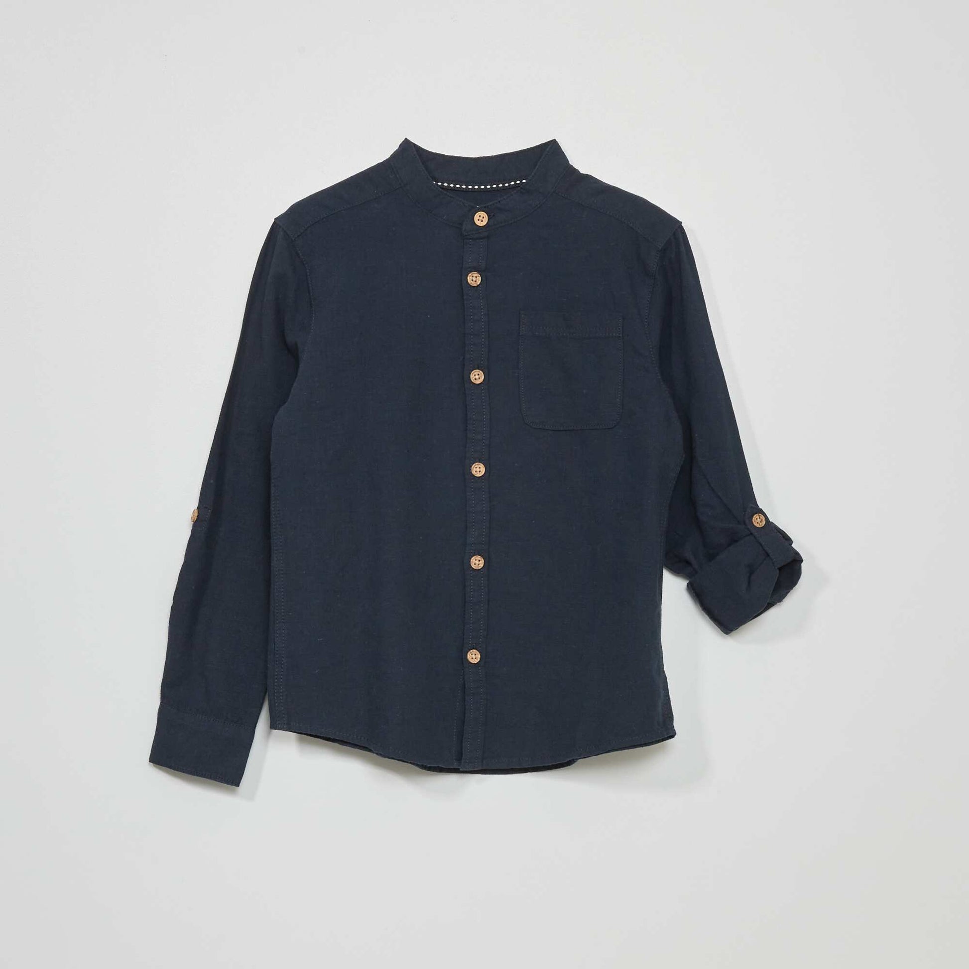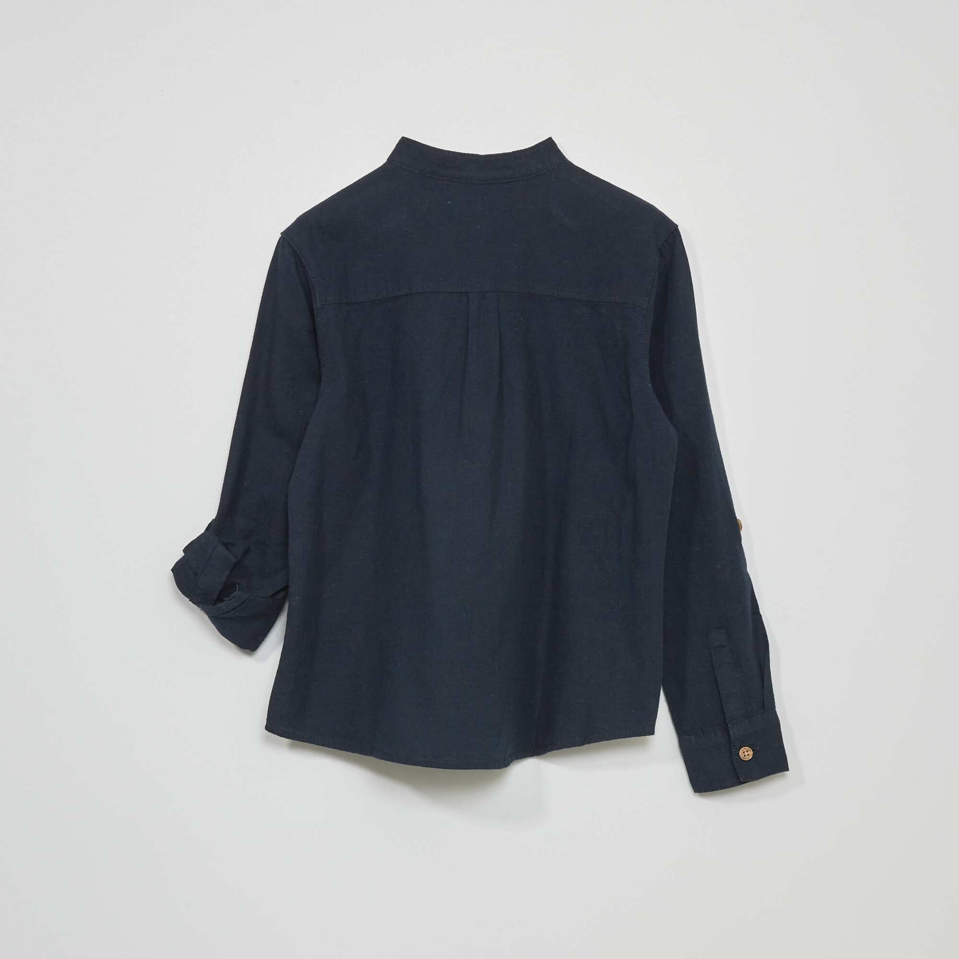 Chemise en lin col mao bleu marine