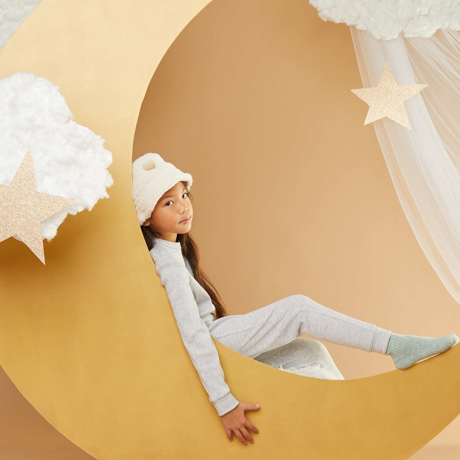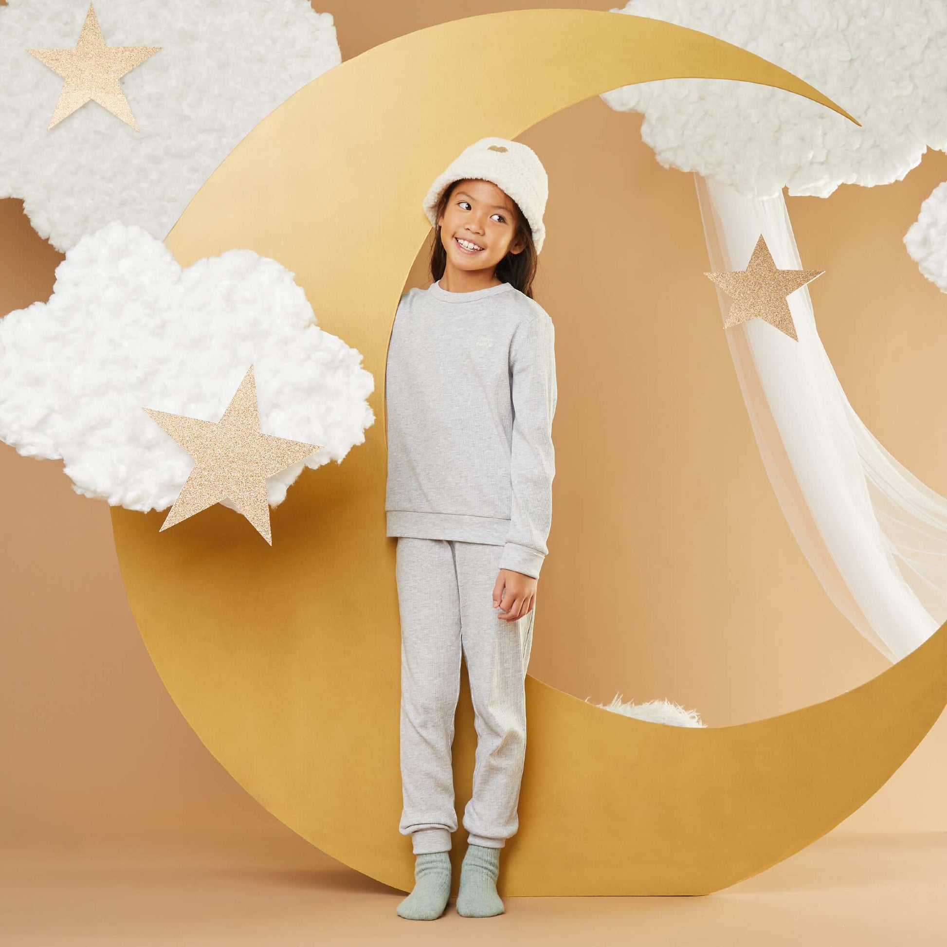 Ce pyjama a un atout magique : il grandit au même rythme que votre enfant, grâce à ses manches et jambes dépliables. Ses superpouvoirs en plus : un coton doux et épais, mais surtout de l’élasthanne ajouté dans les bords du tee-shirt et du pantalon pour les rendre plus robustes, avec en plus des couleurs neutres pour se le passer de sœur en frère !