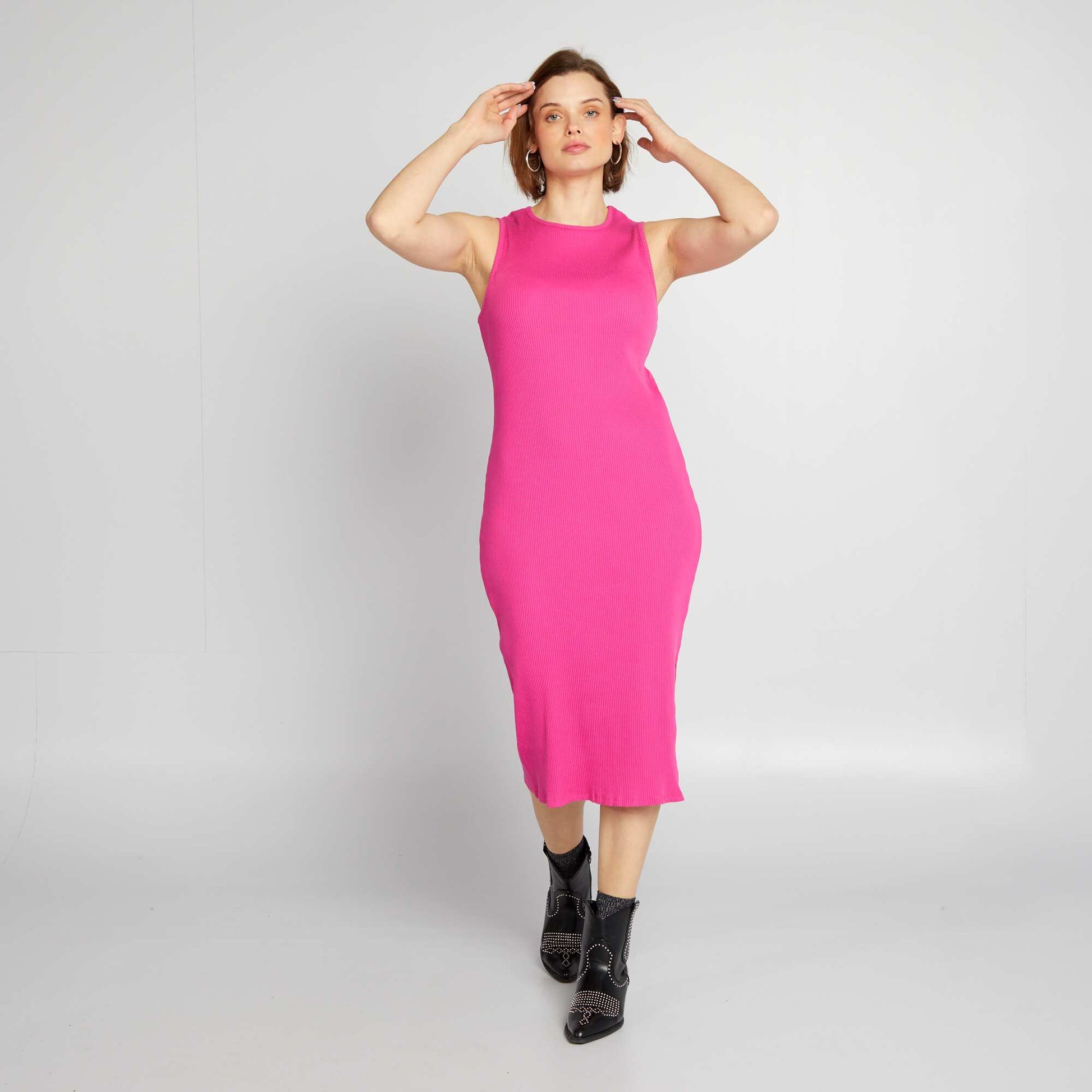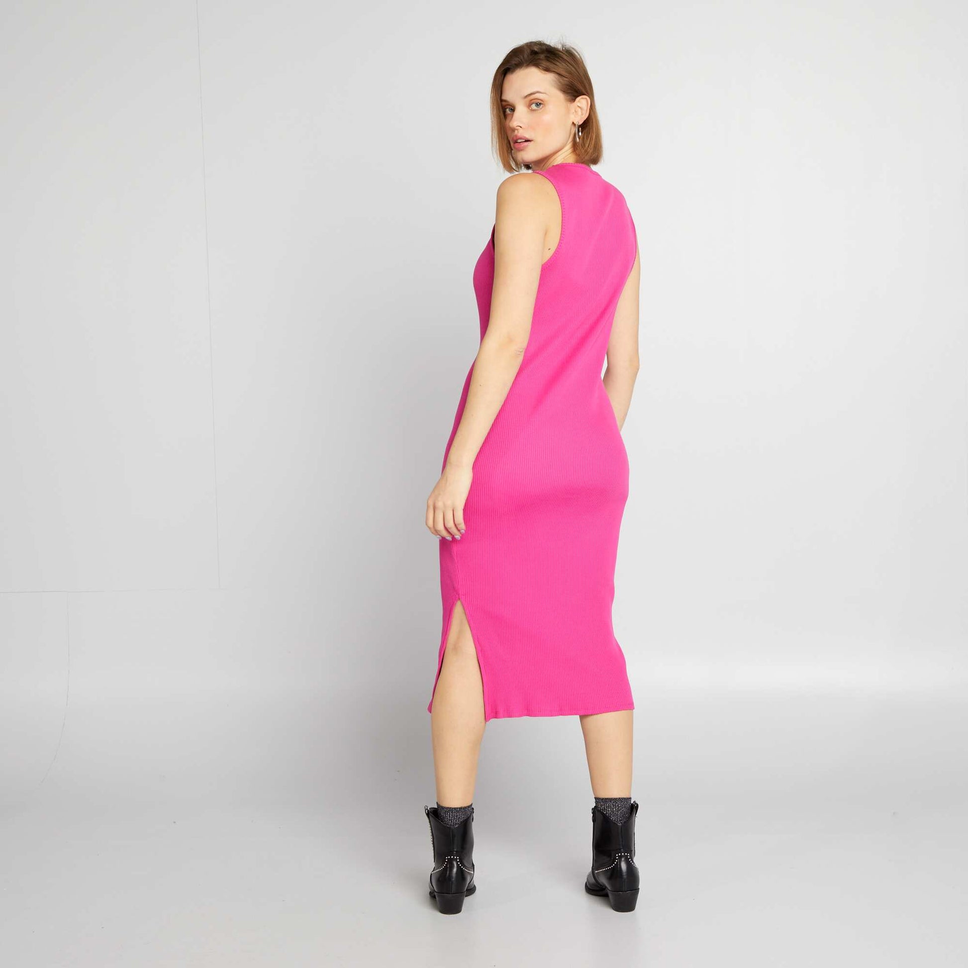 Robe midi côtelée sans manches Rose