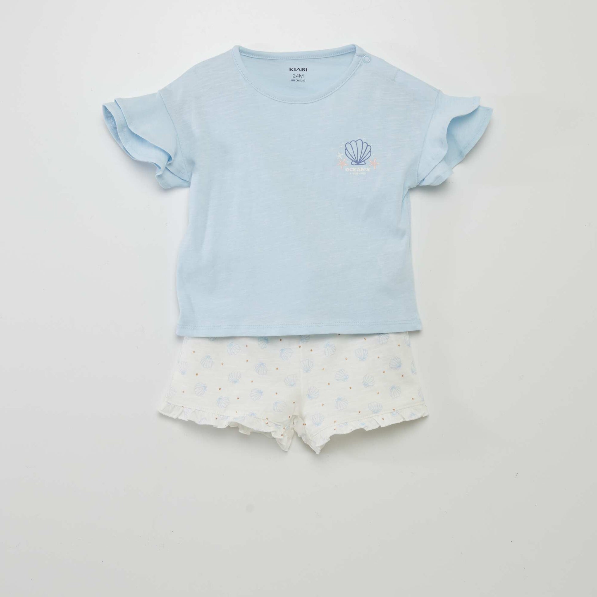 Ensemble pyjama short + t-shirt - 2 pièces Blanc