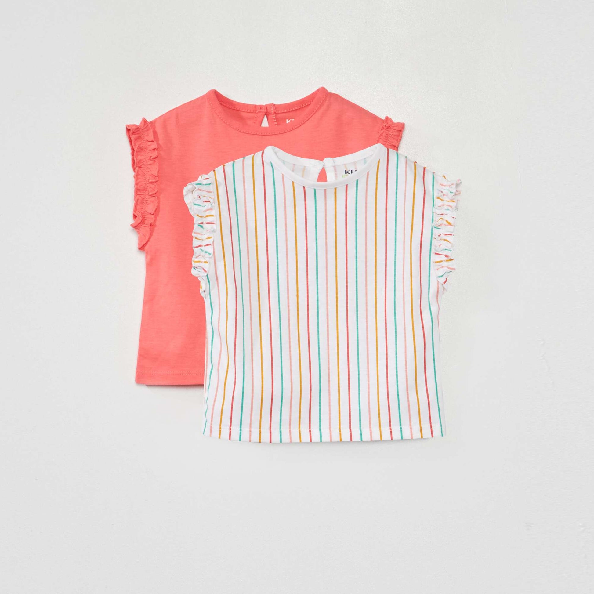 Lot de 2 tee-shirts avec fronces volantées Rose/rayé