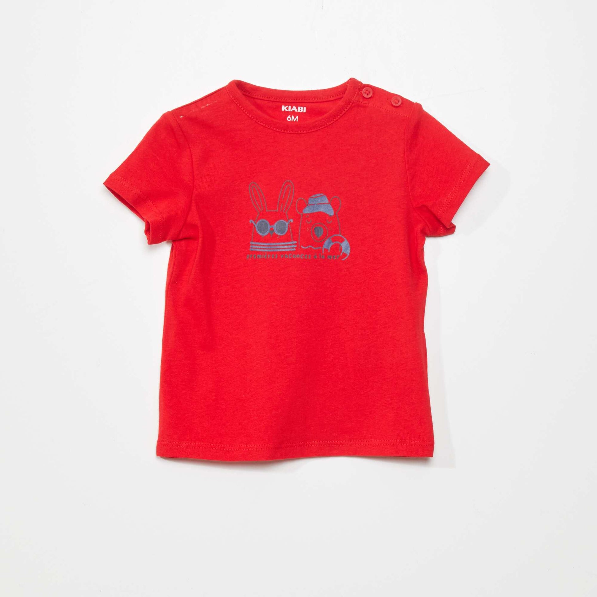 T-shirt en jersey avec ouverture boutonnée Rouge