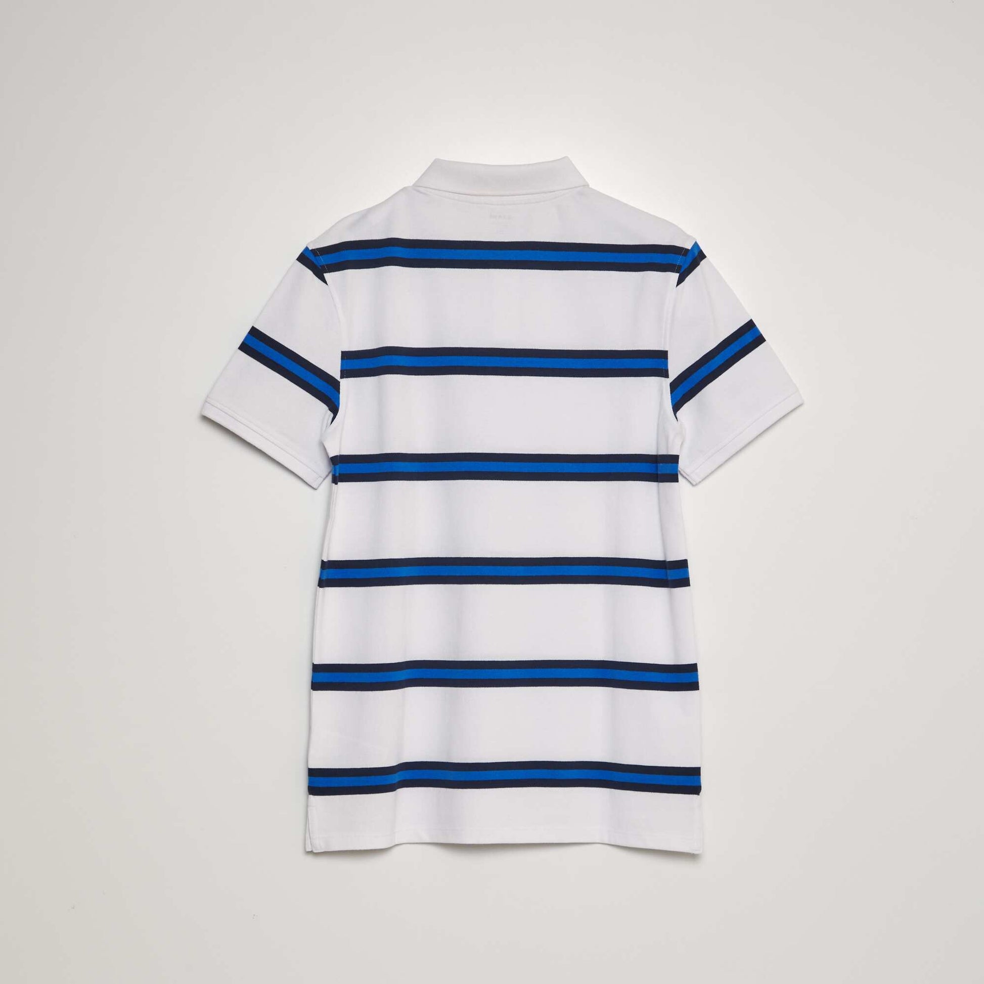 Polo à rayures en piqué de coton Blanc/bleu marine