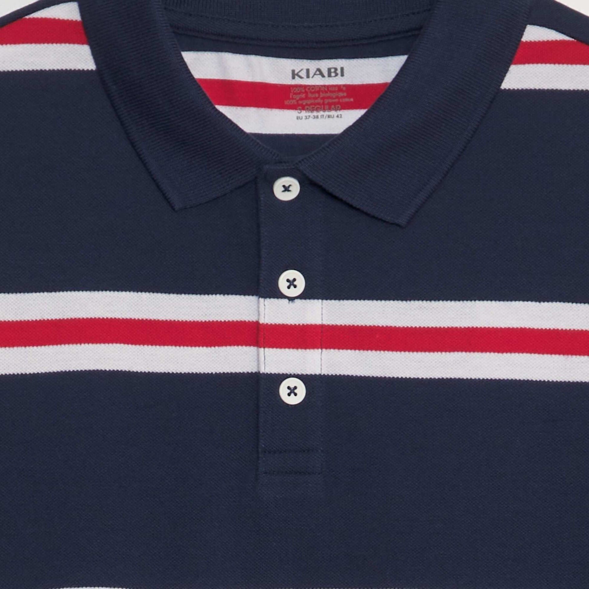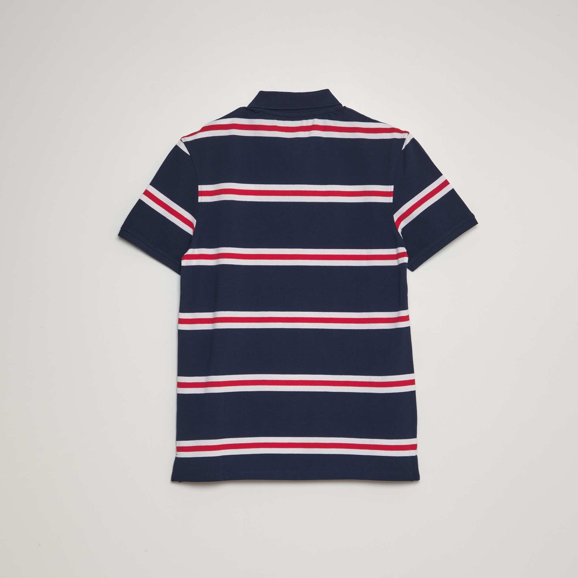 Polo à rayures en piqué de coton Bleu marine/rouge