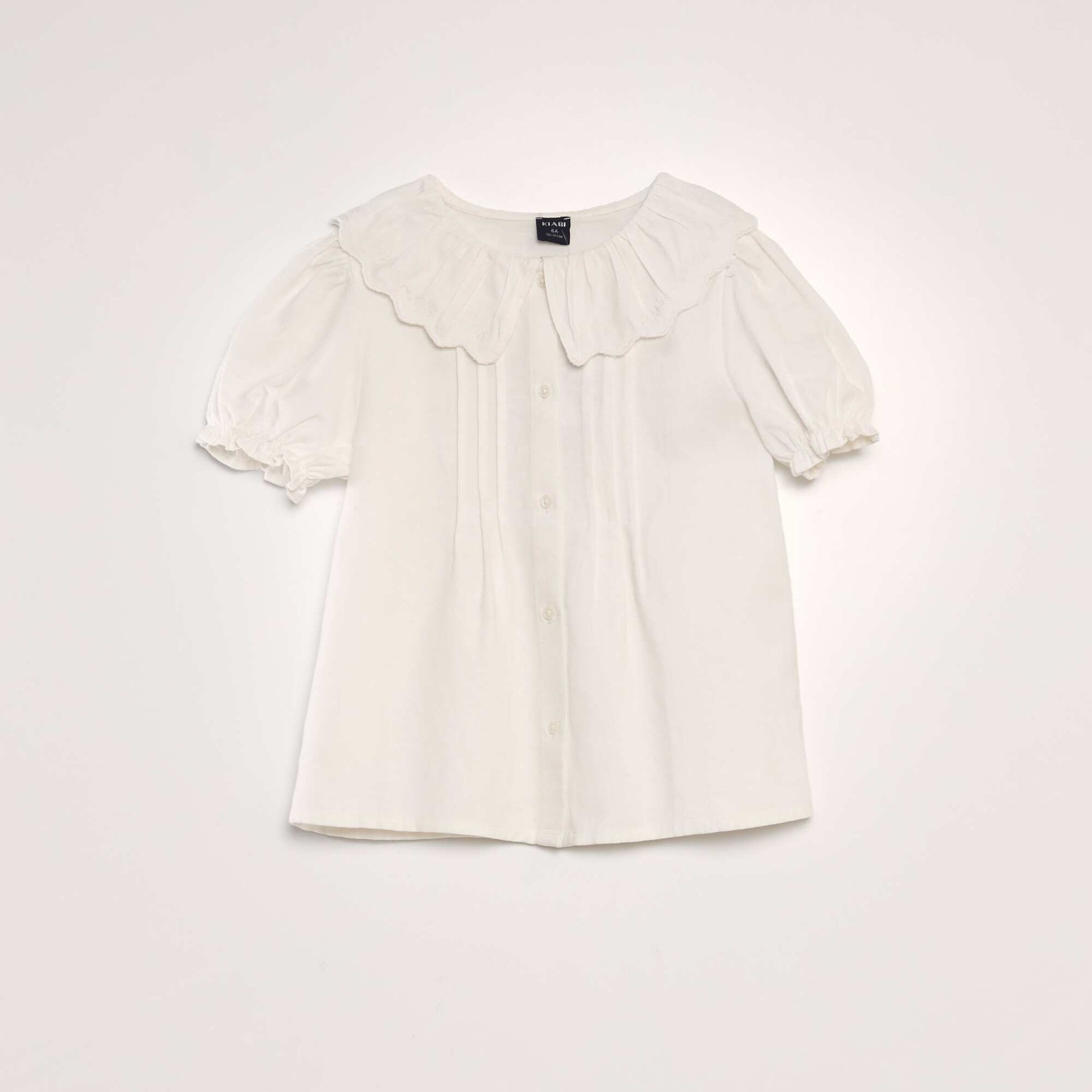 Chemisier en coton lin avec col claudine blanc