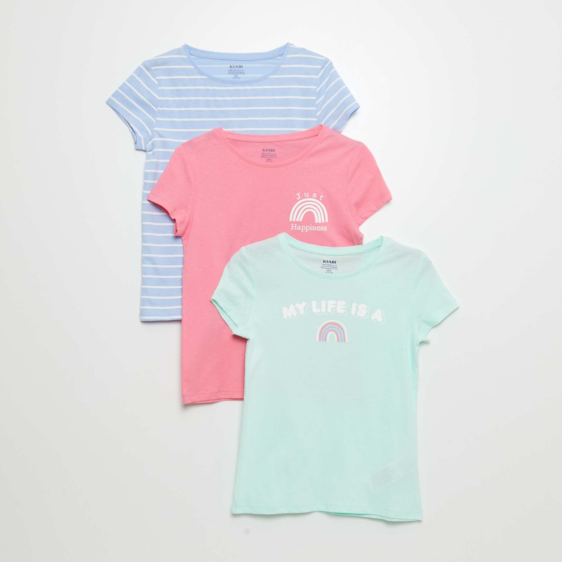 Lot de 3 t-shirts imprimés Rose/bleu/bvert