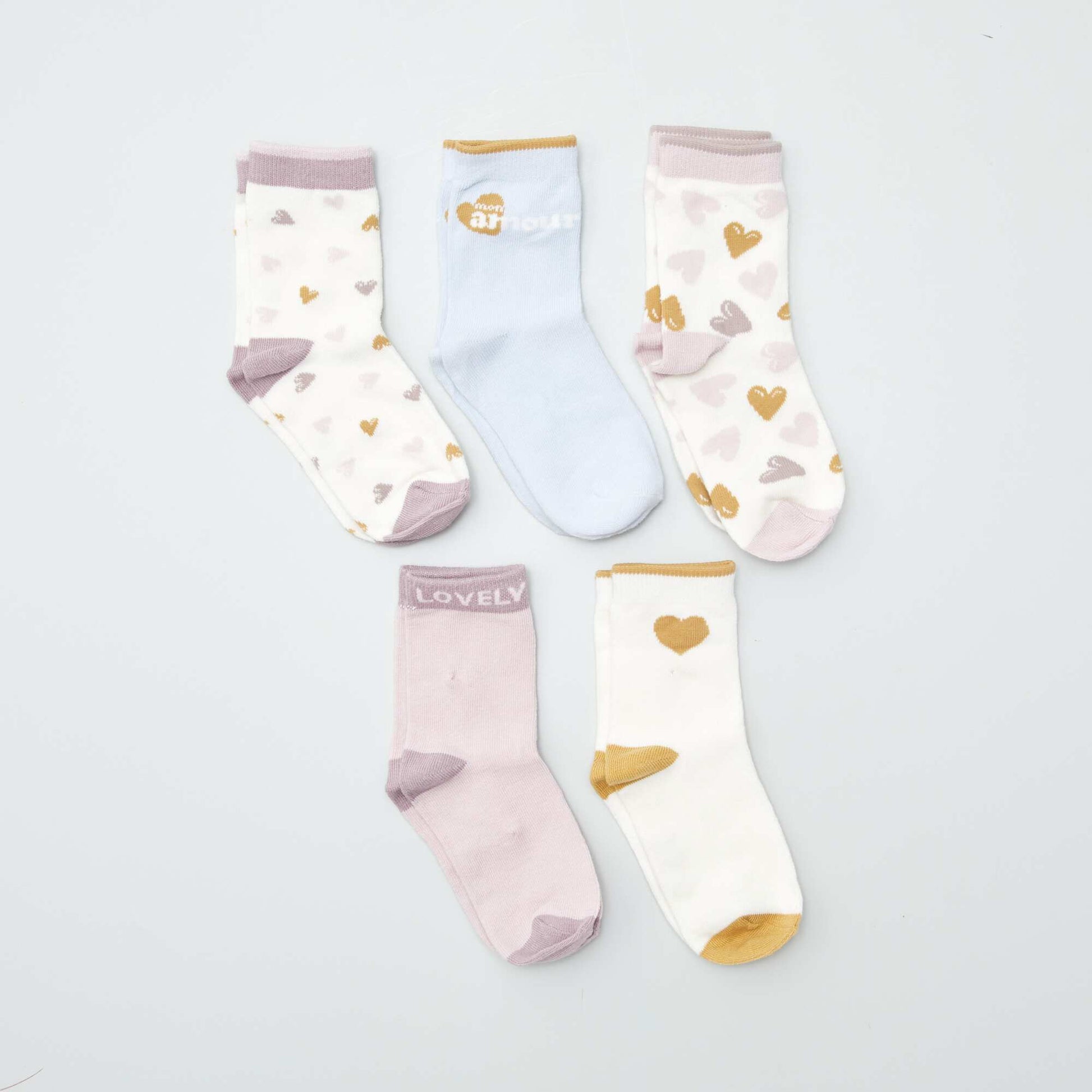 Lot de 5 paires de chaussettes colorées Blanc/rose