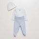 Préparez votre petit trésor pour une douce nuit de sommeil avec notre ensemble 3 pièces complet en coton : body, pantalon avec pieds et bonnet assorti.