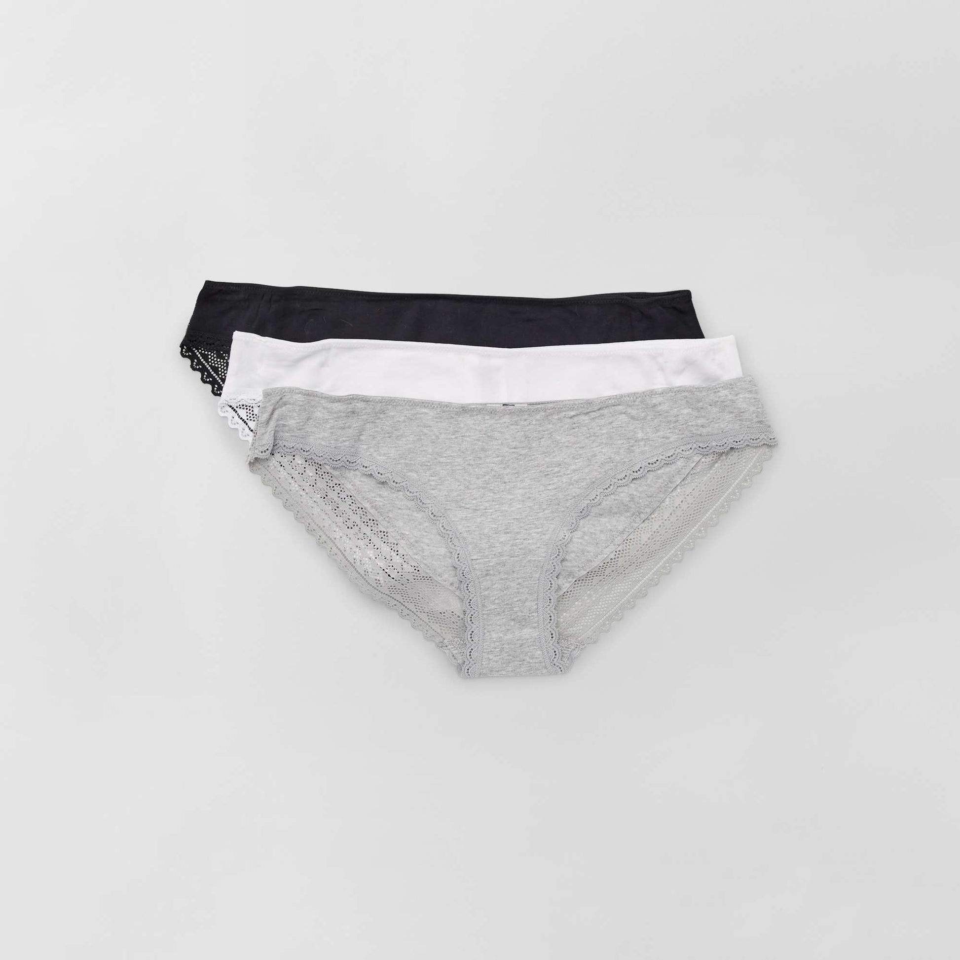 Lot de 3 culottes coton dentelle gris/blanc/noir