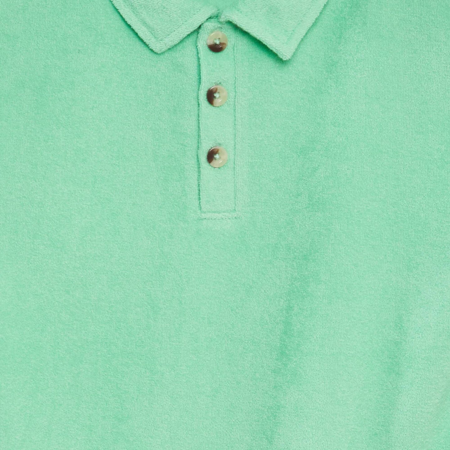 On adore : ce petit polo uni en éponge pour un look original ! - Polo uni - Fini éponge - Col polo - Manches courtes - Fermeture 3 boutons devant - Couleur unie